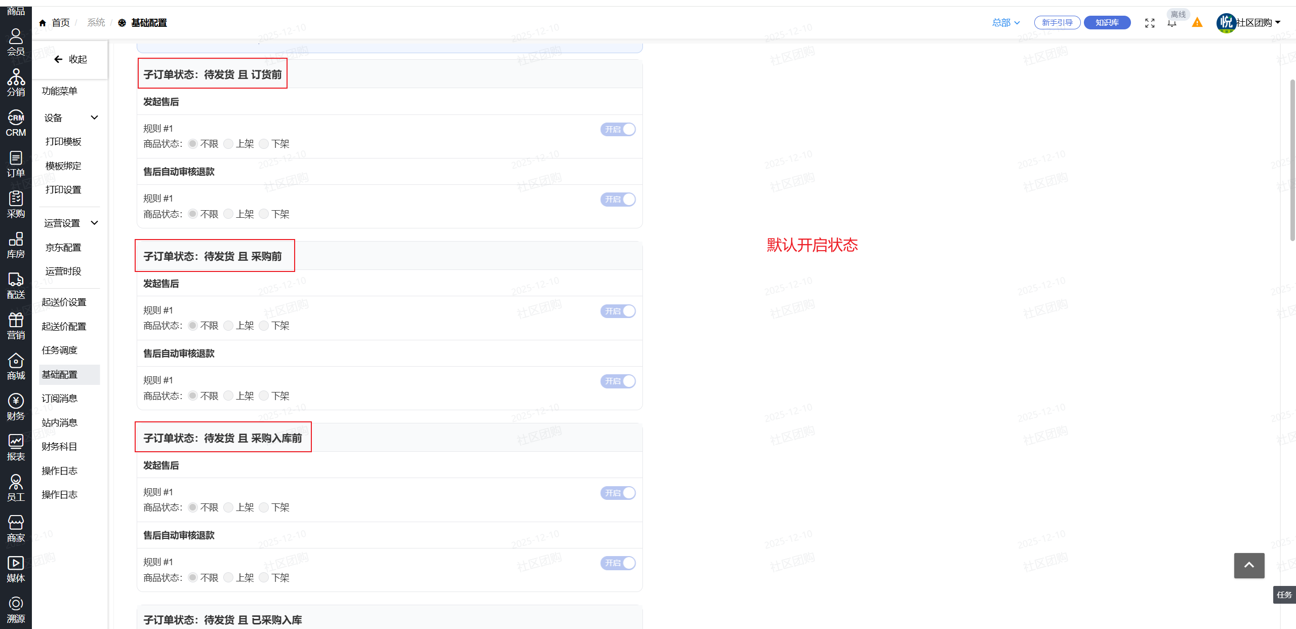 5.订单状态:待发货 且 订货前,待发货 且 采购前,待发货 且 采购入库前,默认允许收银台发起退款,并且自动审核通过