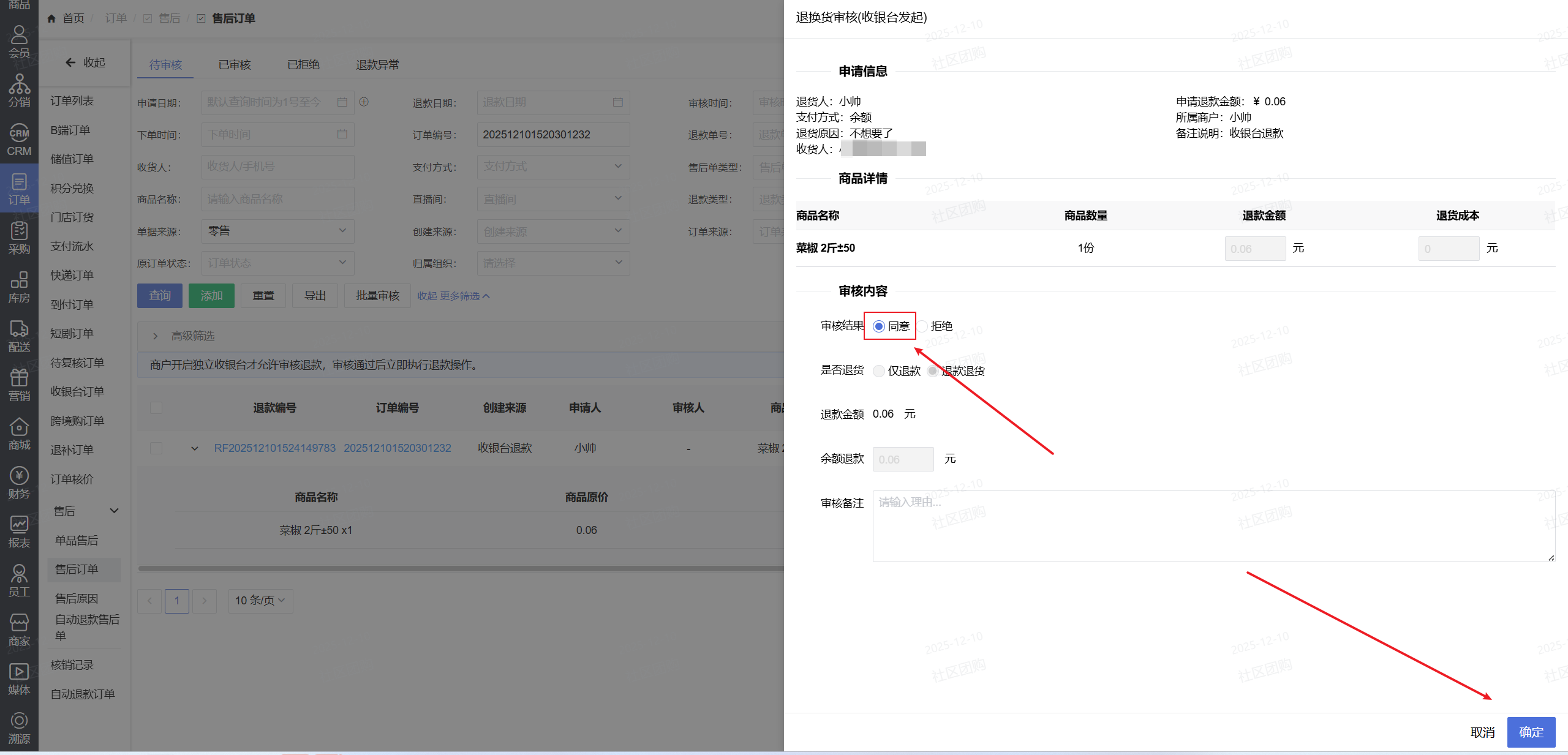8.系统后台-【订单】-【售后订单】-【待审核】-【操作】-【审核】-【同意/拒绝】-【确定】