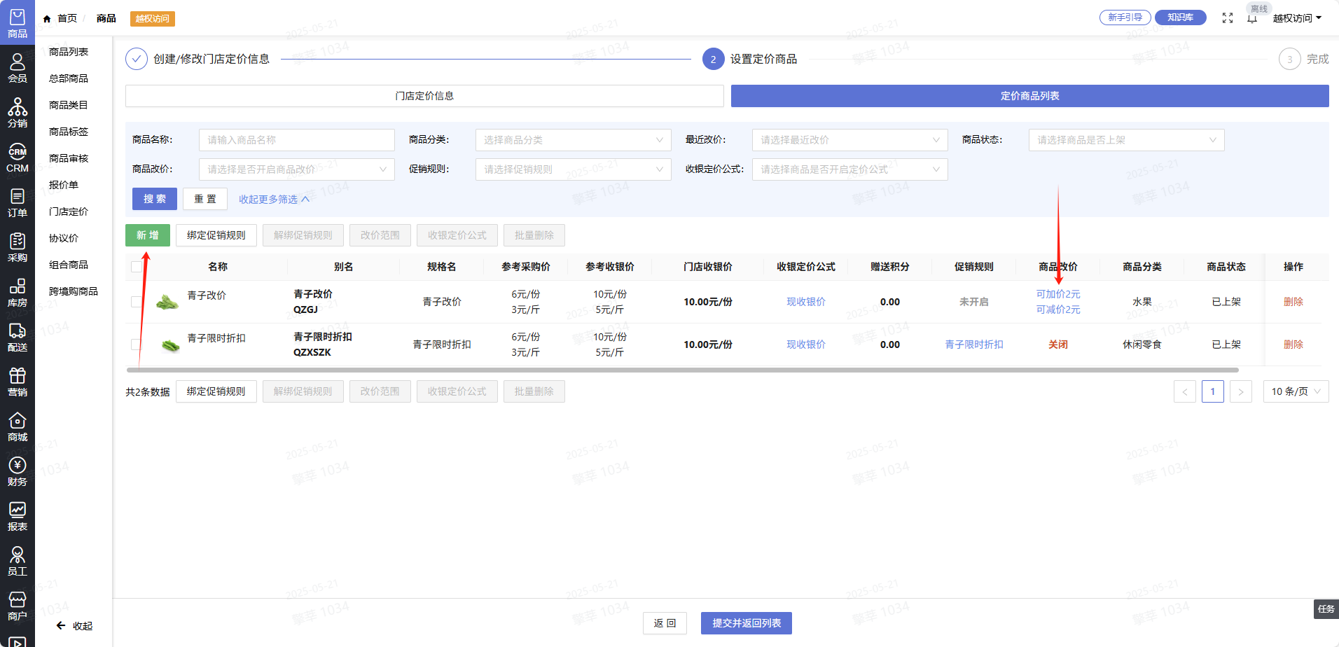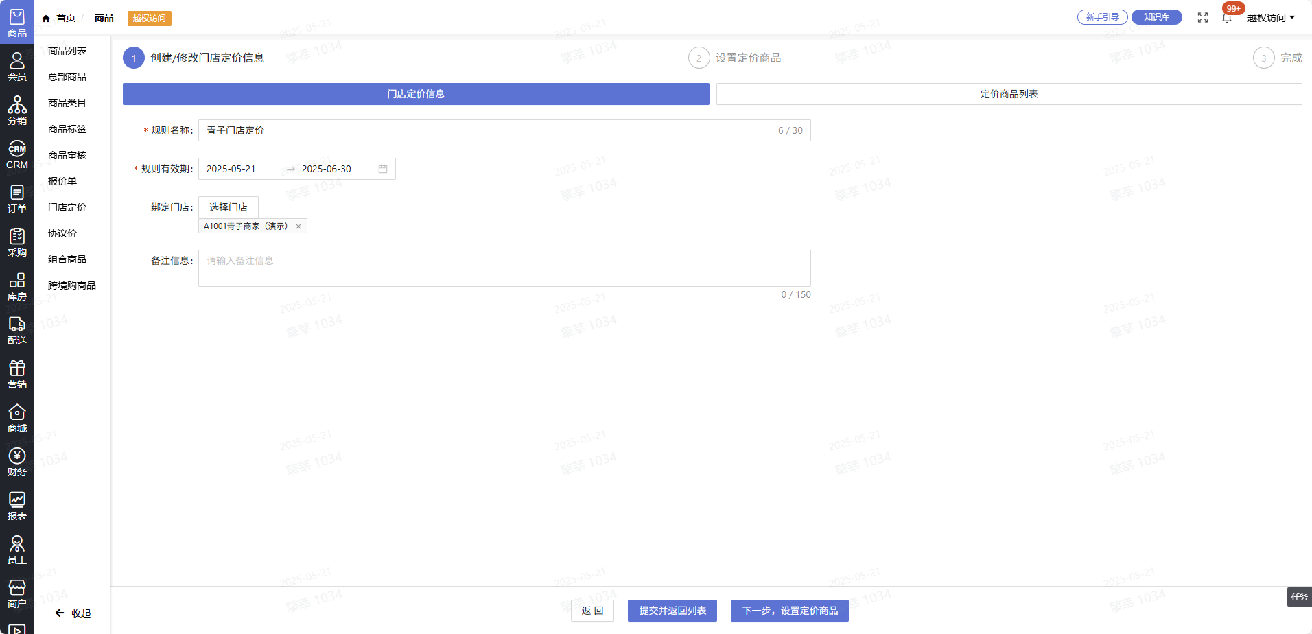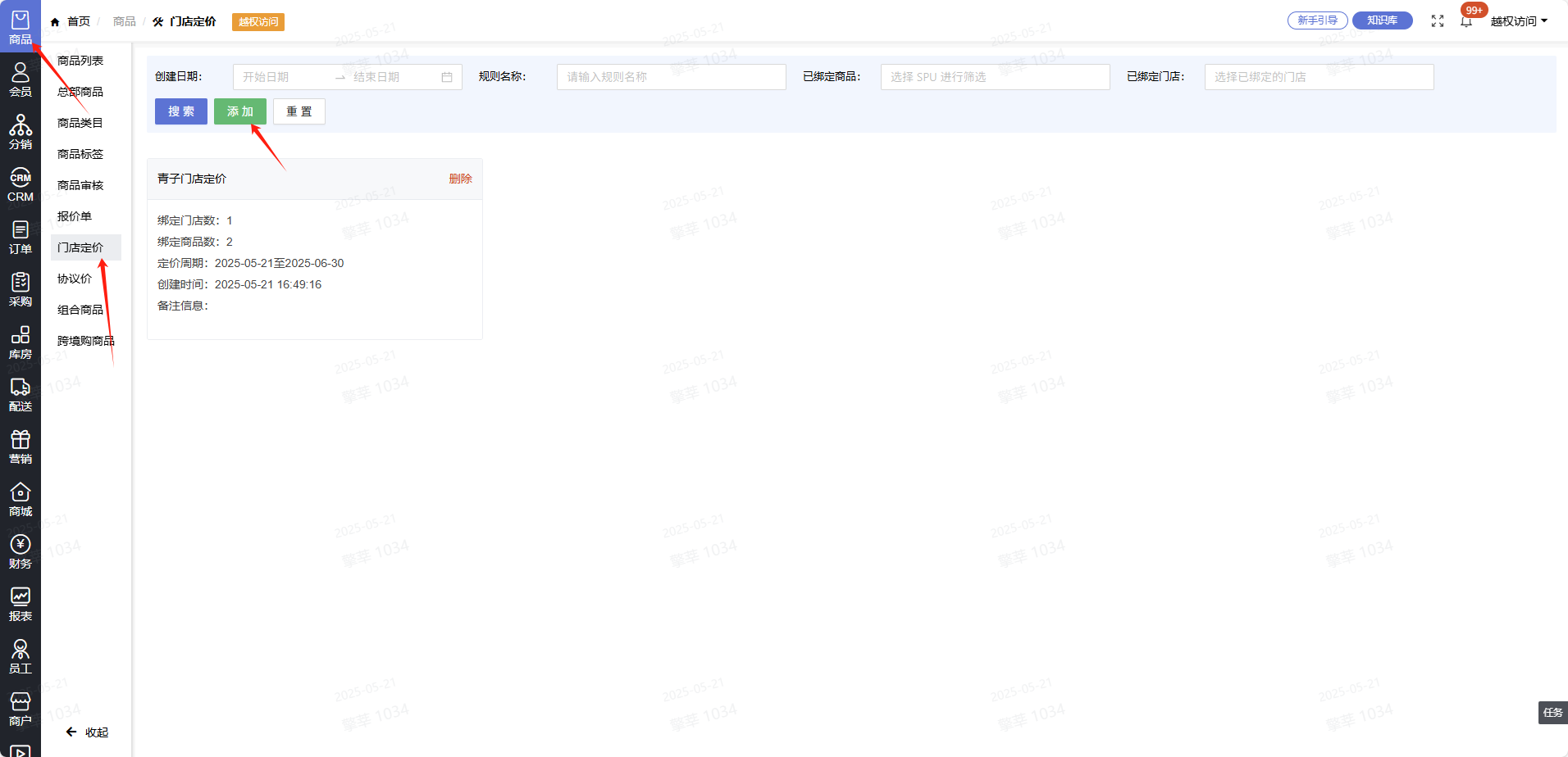 一、点击商品->门店定价->添加门店定价规则