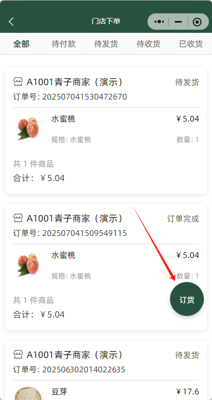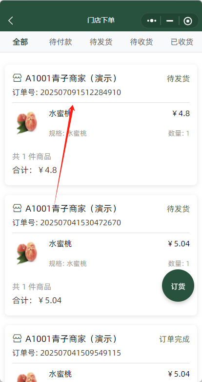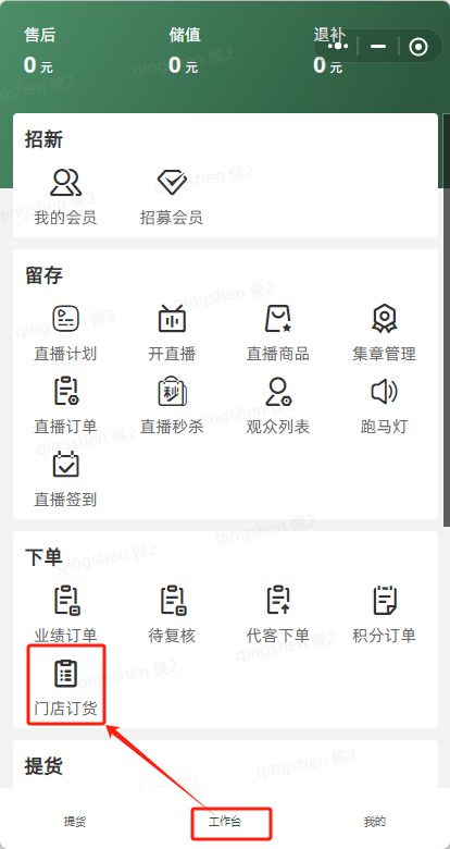 一、微信搜索小程序“ 悦邻分销 ”->打开工作台,订单->门店订货