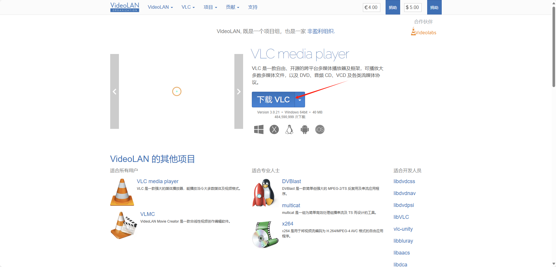 1、下载vlc软件,官网下载即可下载,安装(如遇下载不了可在群里找产品人员要安装包)官网:https://www.videolan.org/