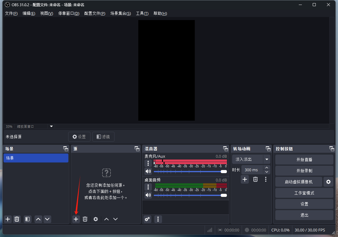 3、打开obs后-添加1个“源”