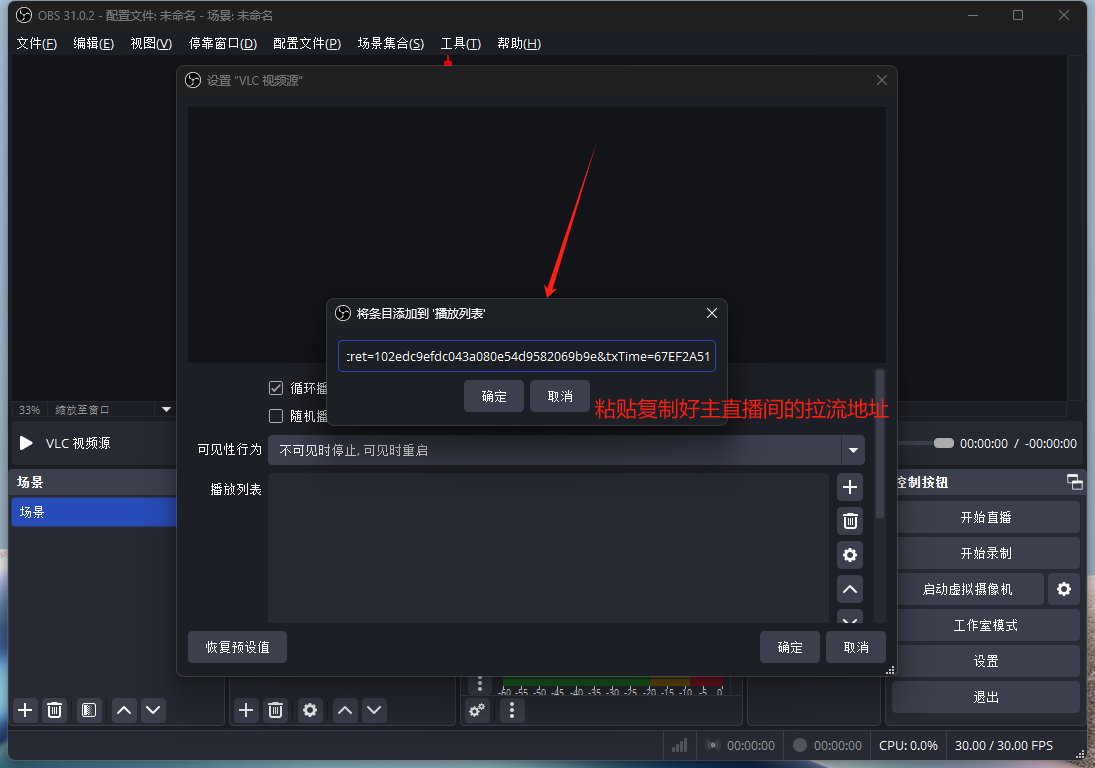 6、粘贴到obs上的VLC视频源上