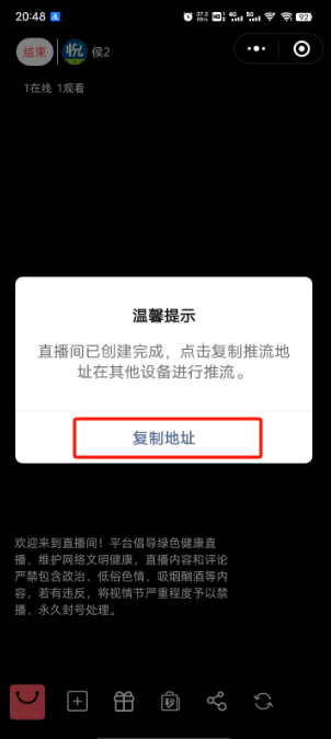 9、复制推流地址