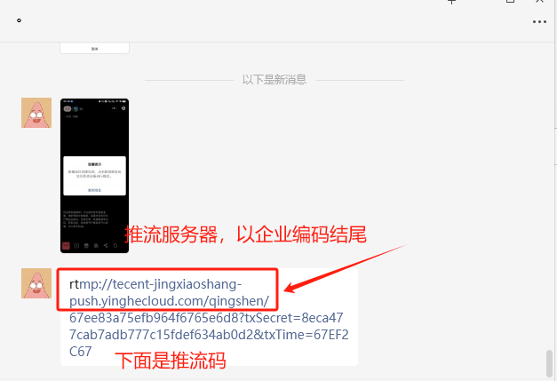 10、粘贴到文件传输助手,分别复制推流服务器和推流码,粘贴到obs