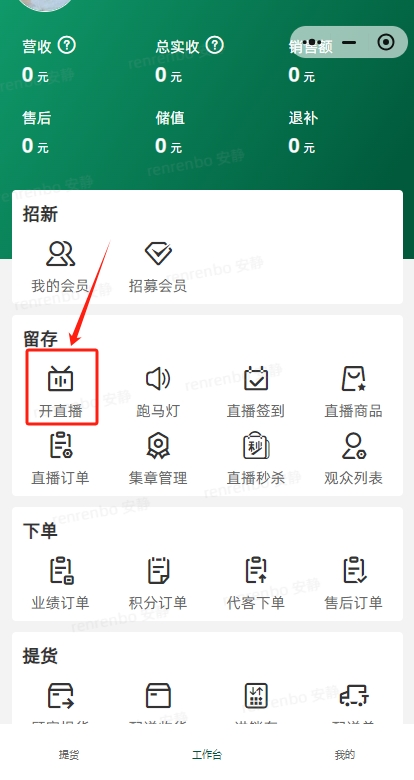 1、转播人员登录分销端,点击开直播