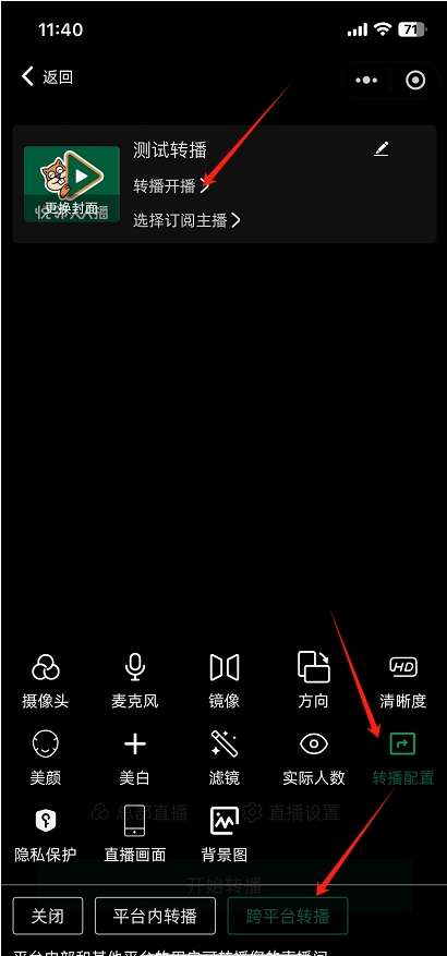 3、直播设置-转播配置-选择跨平台转播