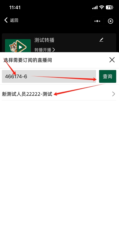 4、输入开播主播分享的转播码并选择直播间