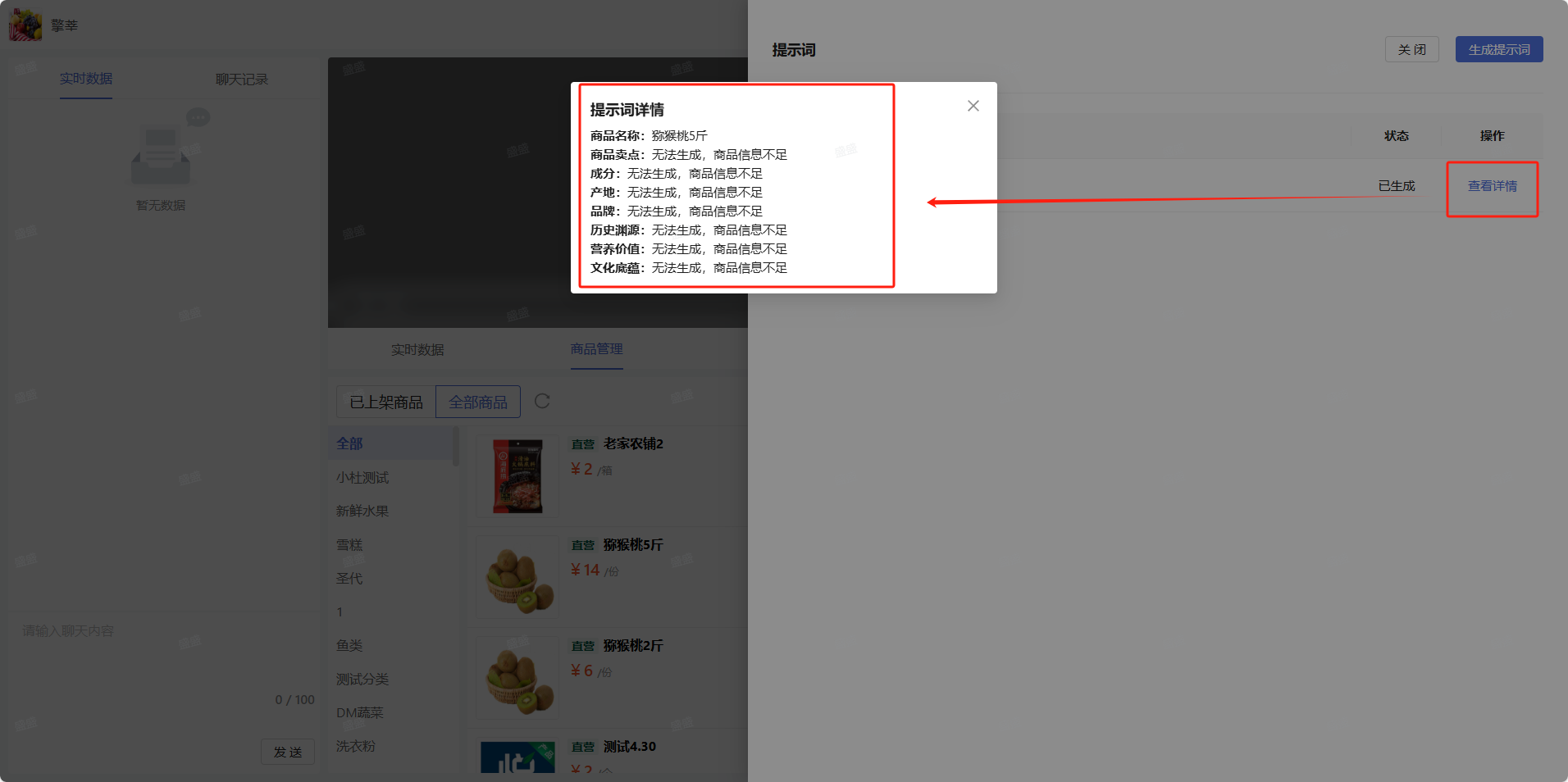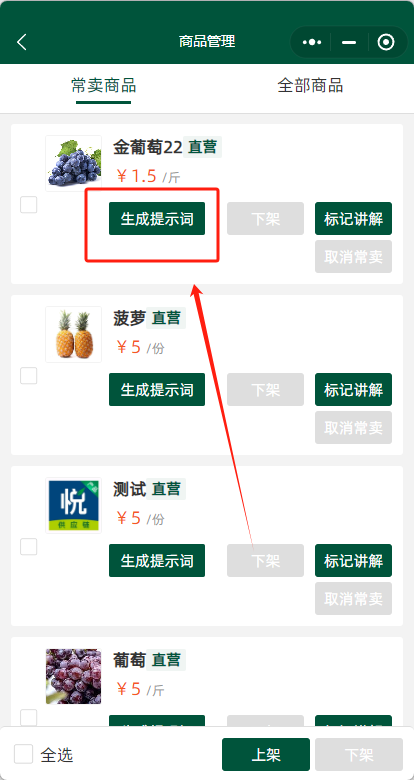 1. 登录分销端—工作台—直播商品中,进行生成提示词