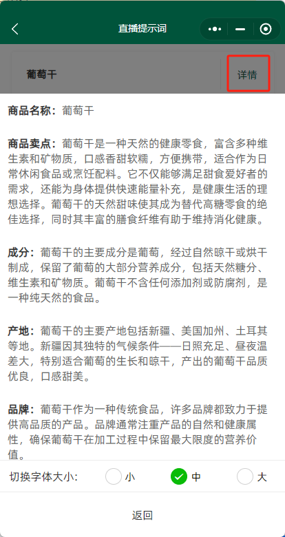 3. 提示词生成后,可点击详情查看